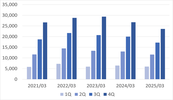 ※4Qは、4月から翌年3月までの12ヶ月間の累計です。